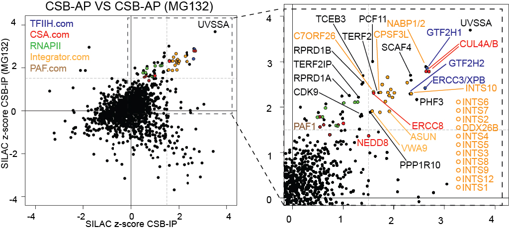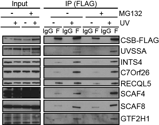 Left, the UV-induced CSB interactome, in the presence and absence of MG132 as indicated.